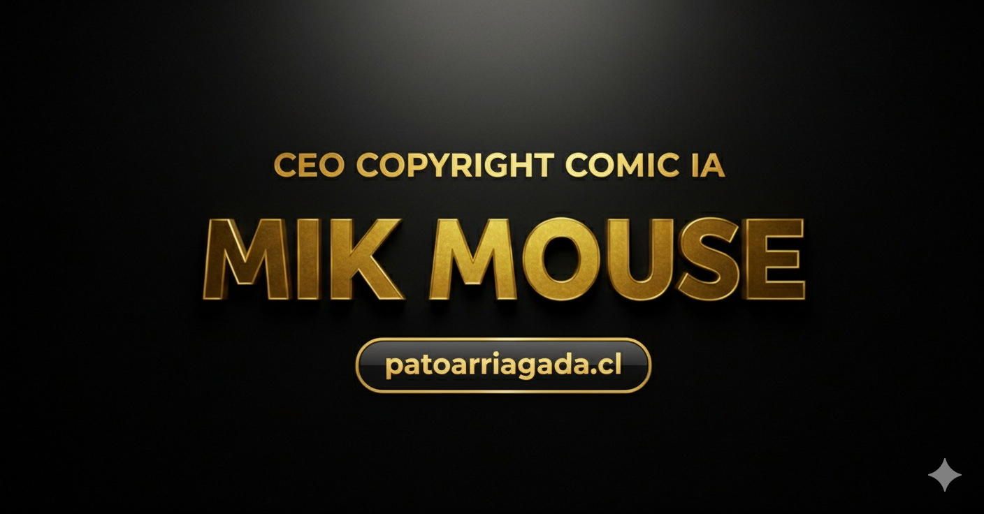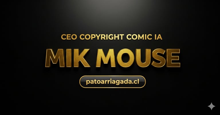 "MIk Mouse, La Revancha" es una idea original de ©PatoArriagada Publicista Digital IA en Neuromarketing. Todo el contenido multimedia ha sido elaborado con herramientas de Inteligencia Artificial. Para lograr equilibrio artificial y humano en el proceso y resultado final, el creador actuó como gestor principal en edición narrativa y escritura de Guion IA, técnicas ilustrativas en Gráfica Digital IA, Edición y Producción Audiovisual IA, Diseño Web, Informática, Marca Digital Intelectual y Gestión de Marketing Publicitario.